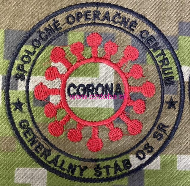Rukávový znak CORONA v digitálnej verzii, nosia príslušníci koordinačneho centra GŠ OS SR.