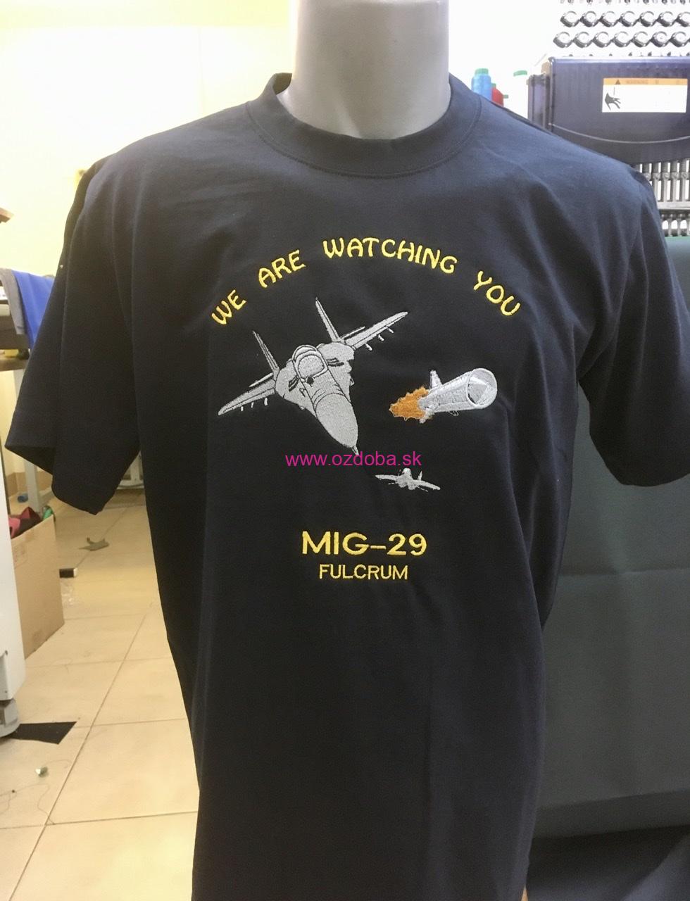 Bavlnené tričko vyššej gramáže s plnou výšivkou pre fanúšikov stíhacích lietadiel Mig-29.