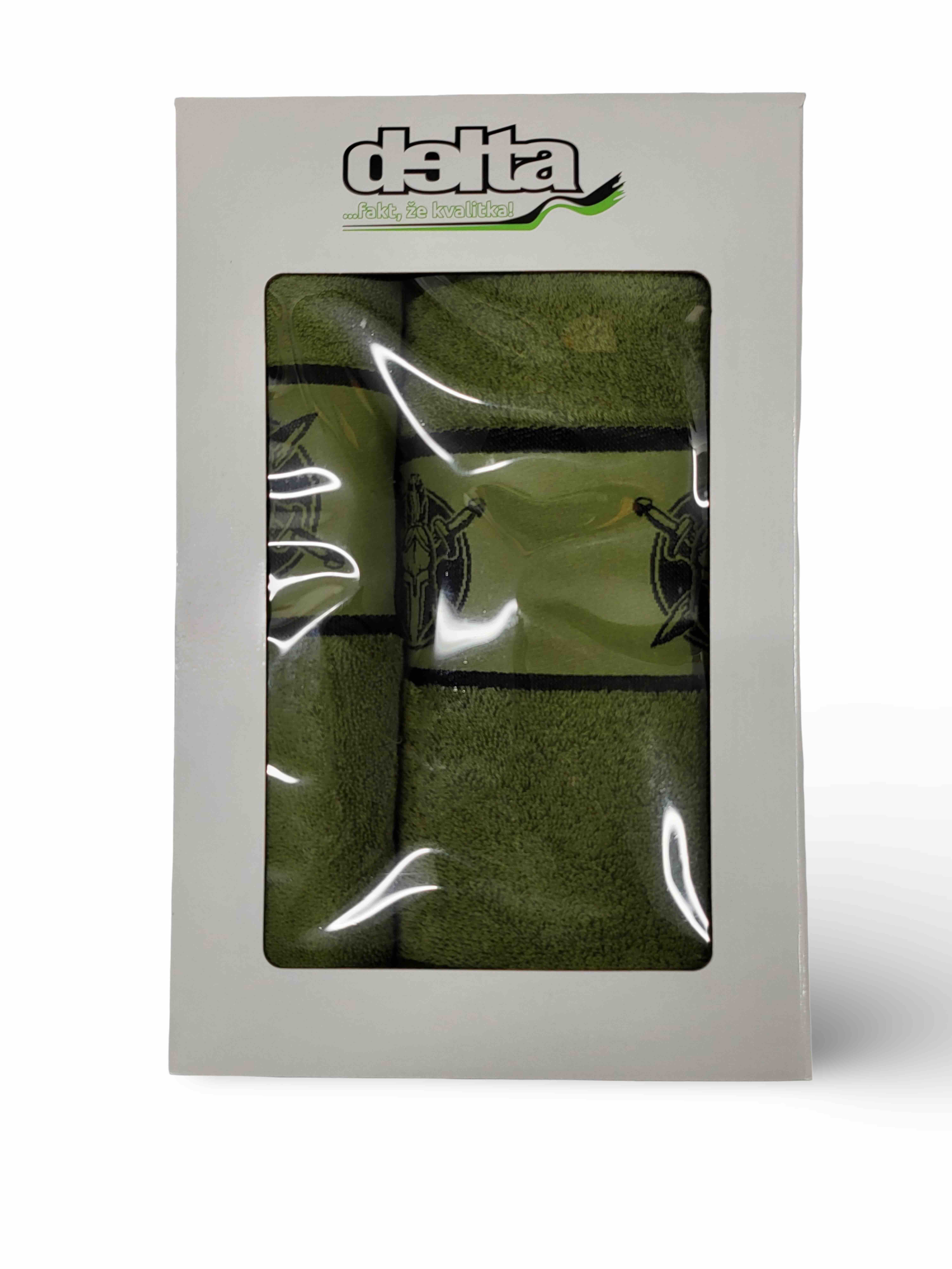 Veľká osuška rozmer 1400x70 cm a malá osuška má rozmer 50x90 cm. Vysoká gramáž 450 g/m2.